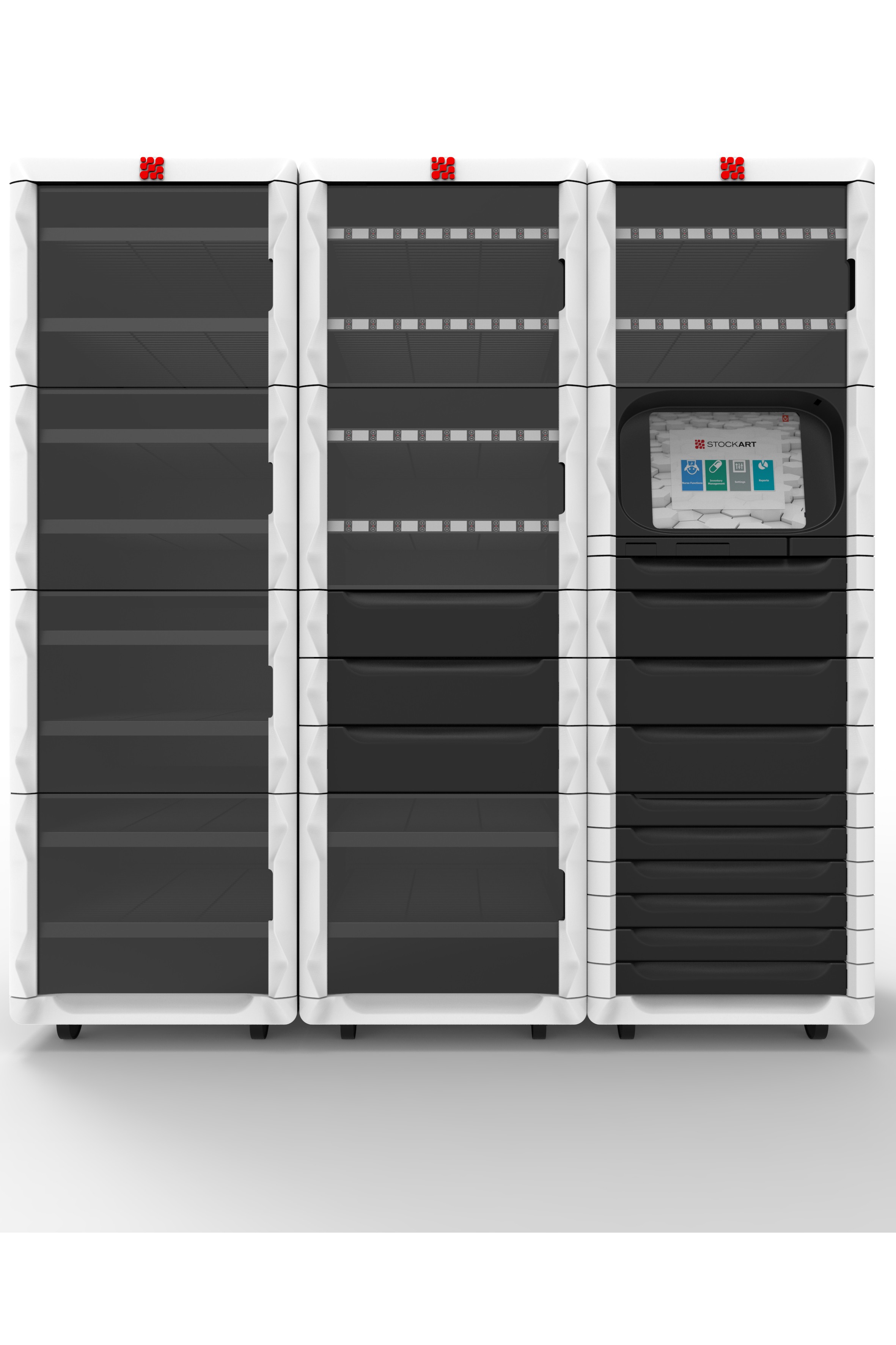 I designed Stockart’s automated supply and medication management systems, leading material, CMF, and manufacturing decisions. A modular system architecture, which I introduced, significantly reduced unit costs compared to the initial metal prototype, exceeding company projections. The project received a “Good Design” award at Design Turkey.